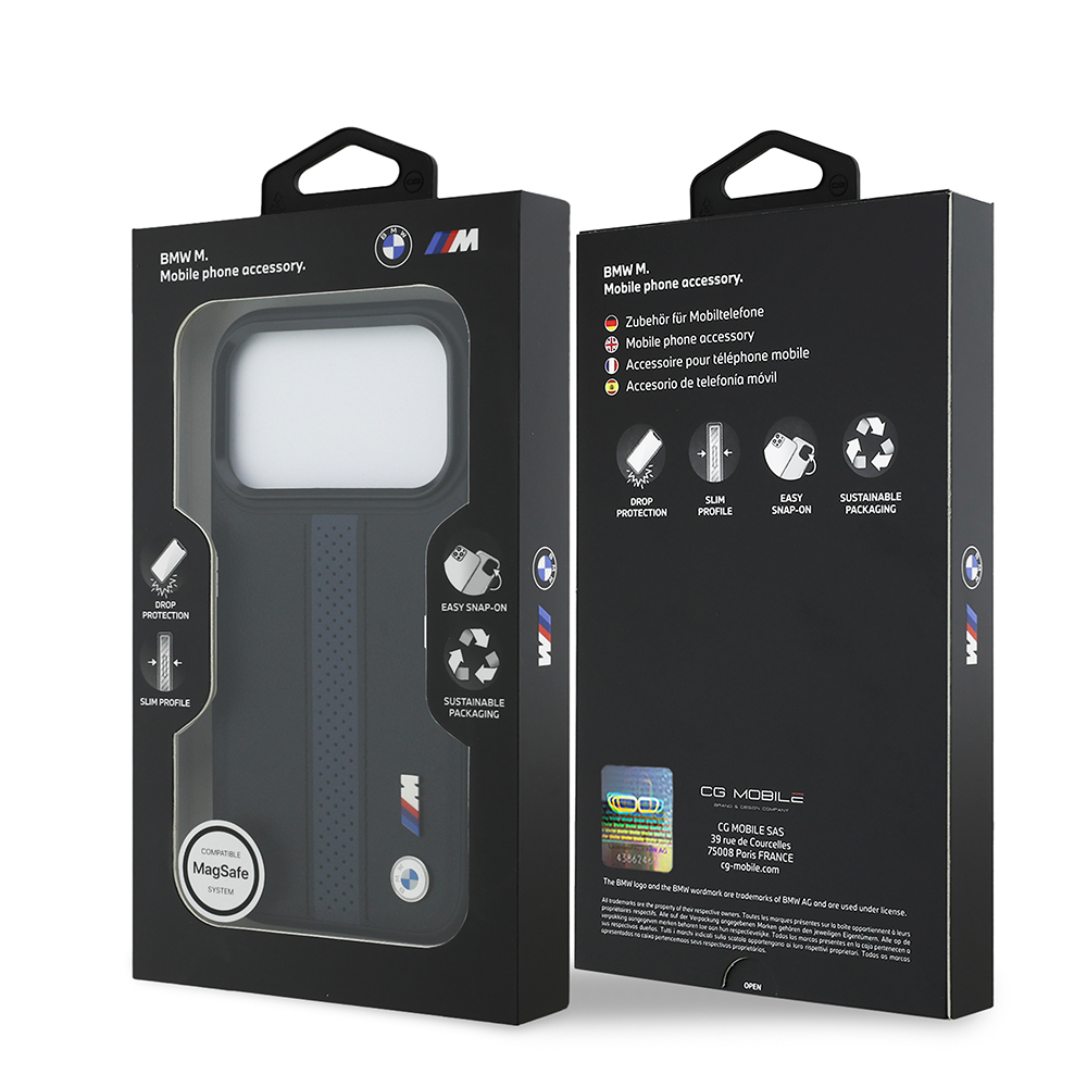 Apple iPhone 17 Pro Kılıf BMW Orjinal Lisanslı M-safe Şarj Özellikli Deri Arka Yüzey Metal Logolu Delikli Şerit Tasarımlı Kapak - 1