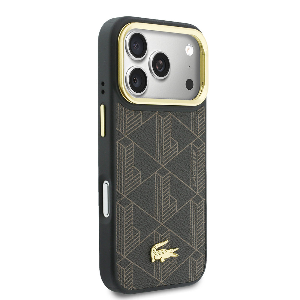 Apple iPhone 17 Pro Kılıf Lacoste Orjinal Lisanslı M-safe Şarj Özellikli Standlı PU Deri Karışık Monogram Desenli Kapak