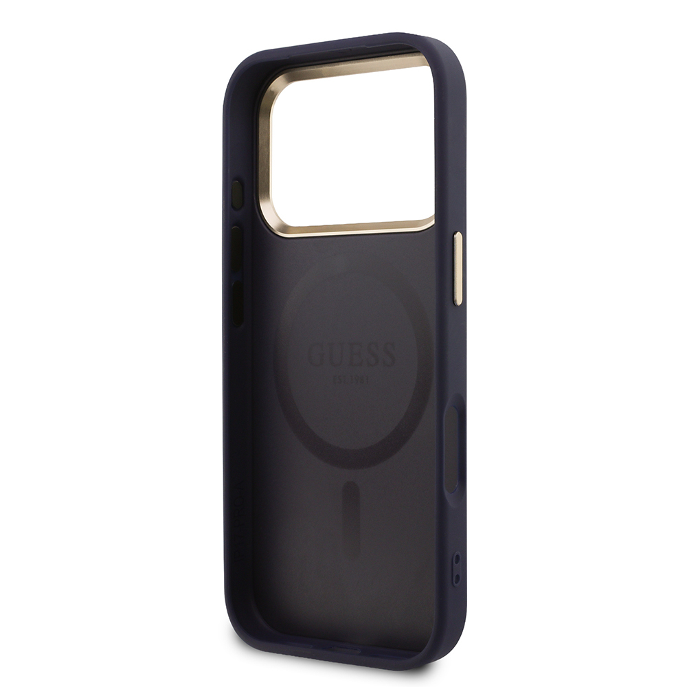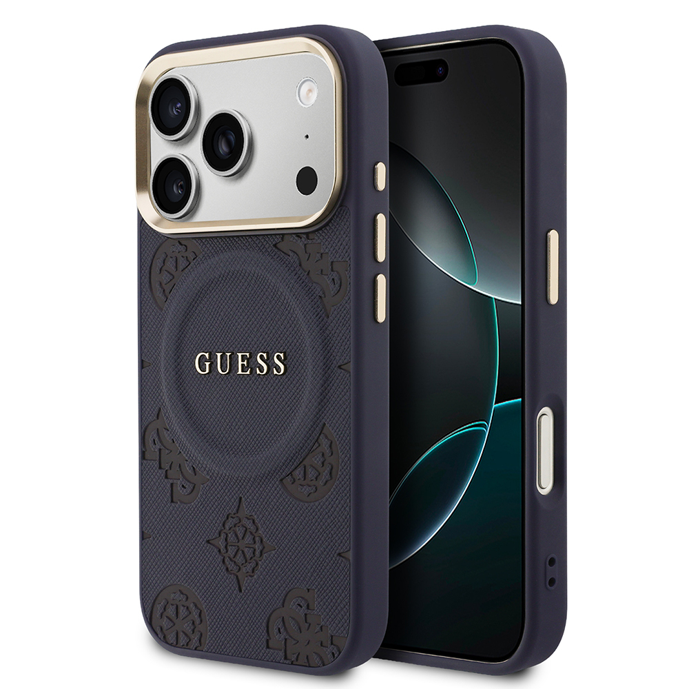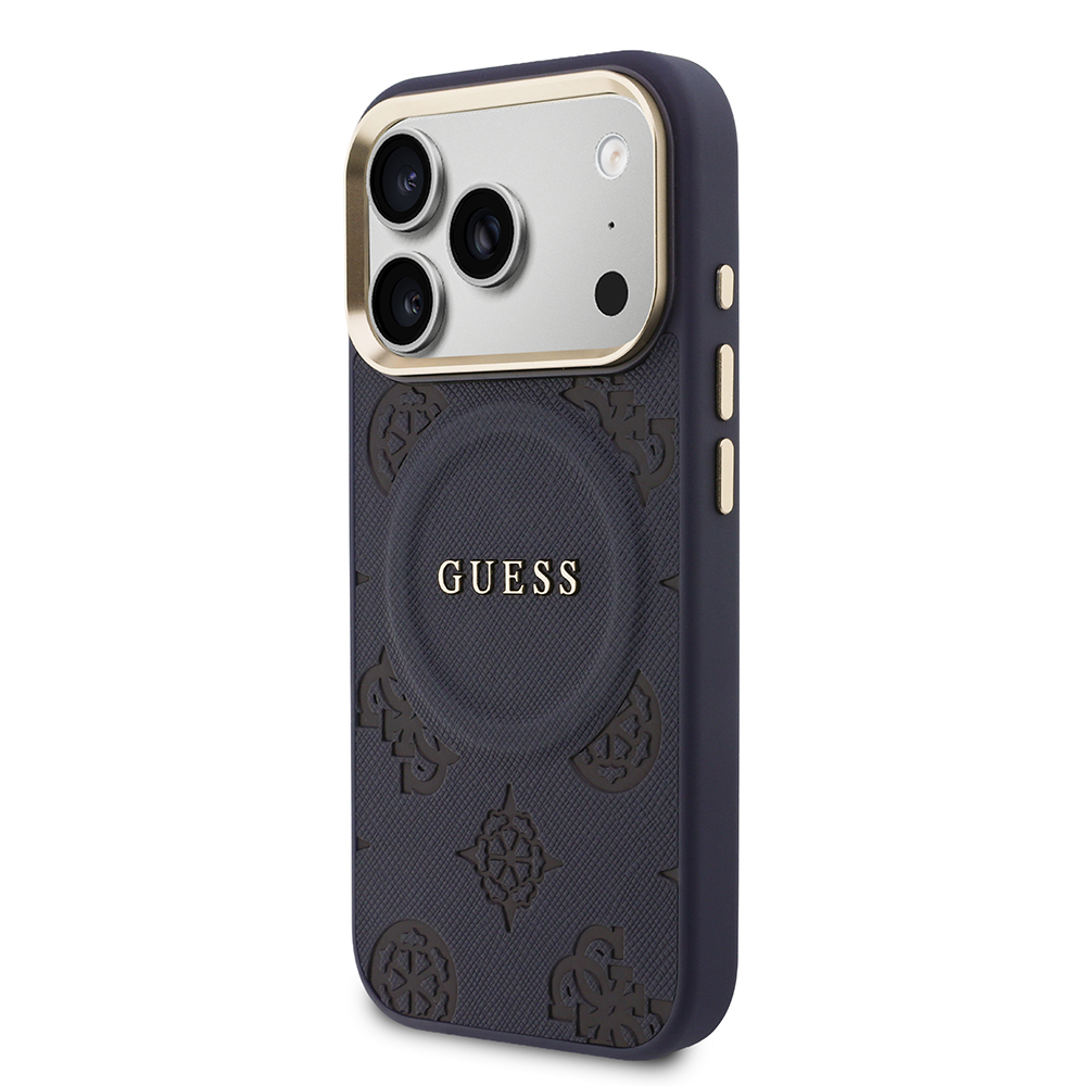 iPhone 17 Pro Kılıf Guess Orjinal Lisanslı M-safe Şarj Özellikli Sıcak Baskılı Yazı Logolu PU Deri Peony Kapak