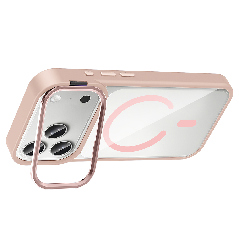 Apple iPhone 17 Pro Kılıf Standlı ve Kamera Lens Hediyeli M-Safe Şarj Özellikli Zore Etro Kapak