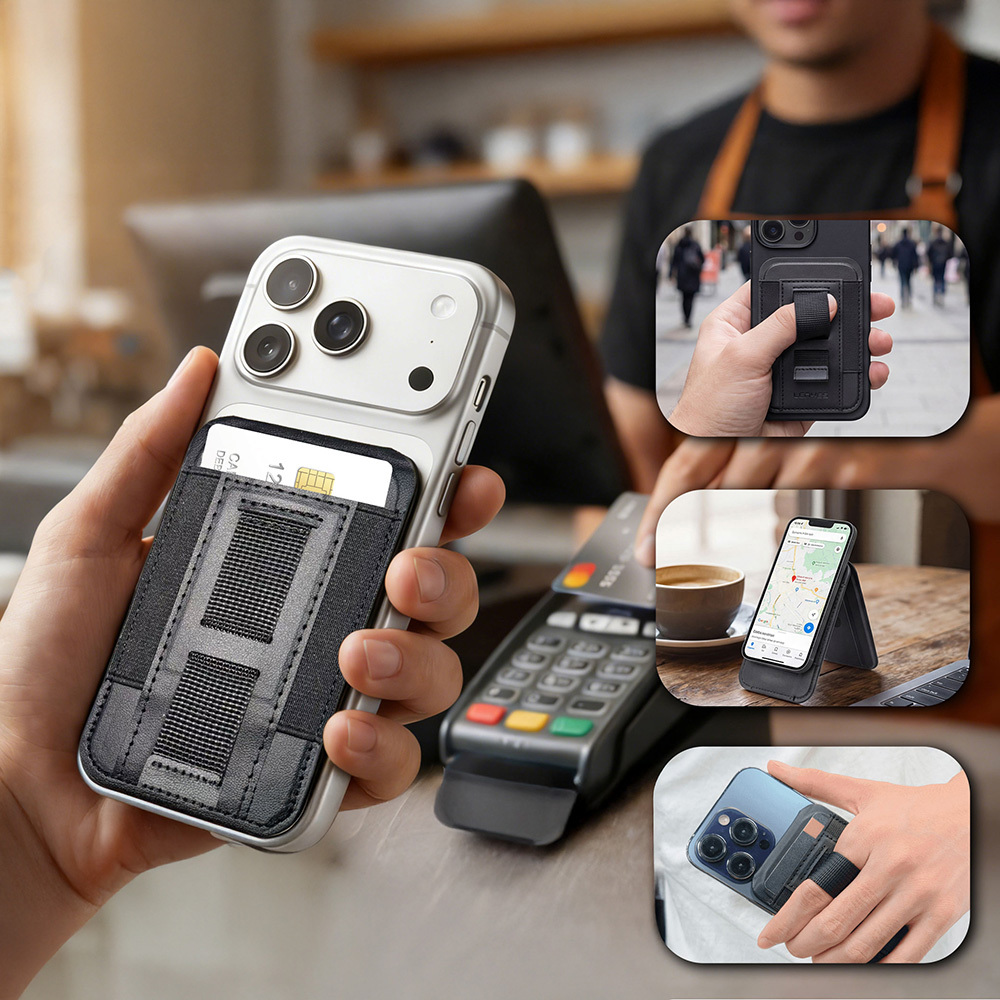 Elastik bantlı webbing handle tasarımı sayesinde telefonunuzu tek elle daha güvenli kavrayabilirsiniz. Aynı zamanda 5-6 kart kapasitesi ile günlük ihtiyaçlarınızı yanınızda taşımanızı kolaylaştırır. Kredi kartı, kimlik veya ulaşım kartınızı yerleştirerek cüzdan taşıma ihtiyacını azaltabilirsiniz. Seyahatlerde, kısa dışarı çıkışlarda ya da alışveriş sırasında hem pratik hem düzenli bir kullanım sunar.
